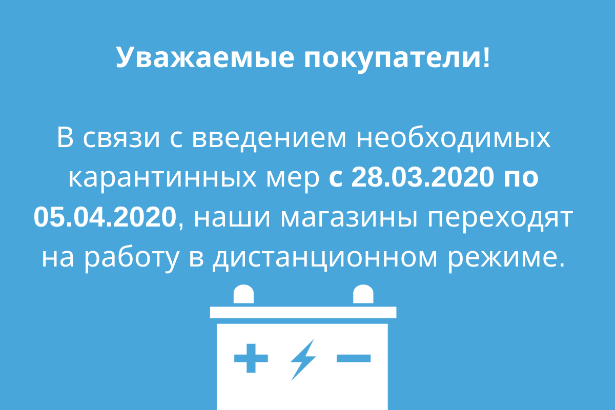 В связи с введением необходимых карантинных мер с 28.03.2020 по 05.04.2020, наши магазины переходят на работу в дистанционном режиме.